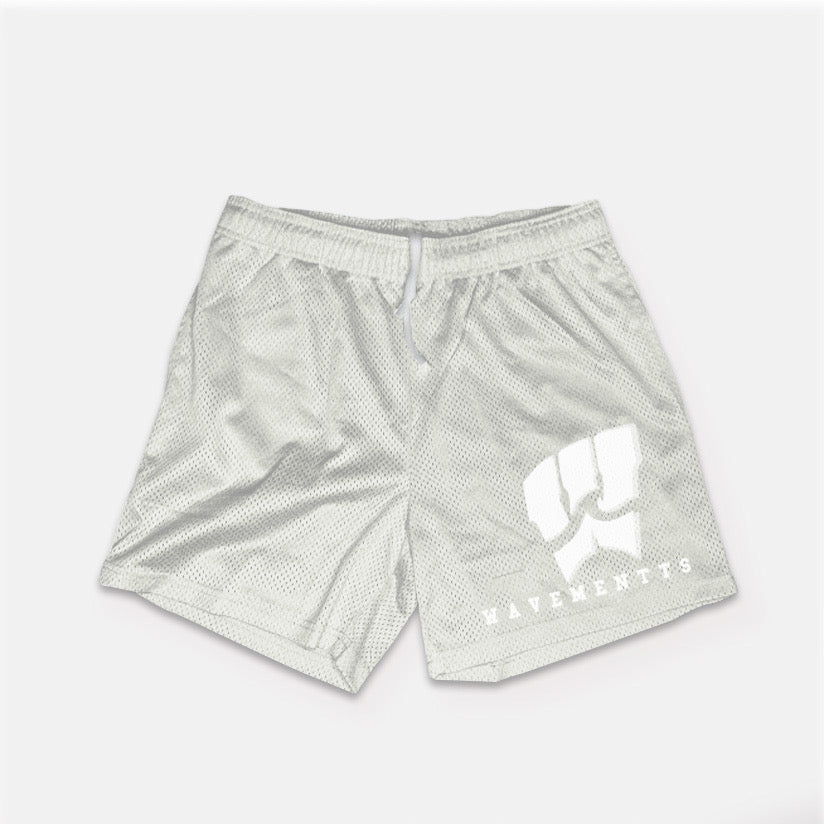 100% Polyester, Single layer mesh. Unisex fit. 5.5 inch inseams. Stay true to size for above knee fit. Gray Reflective Logo.